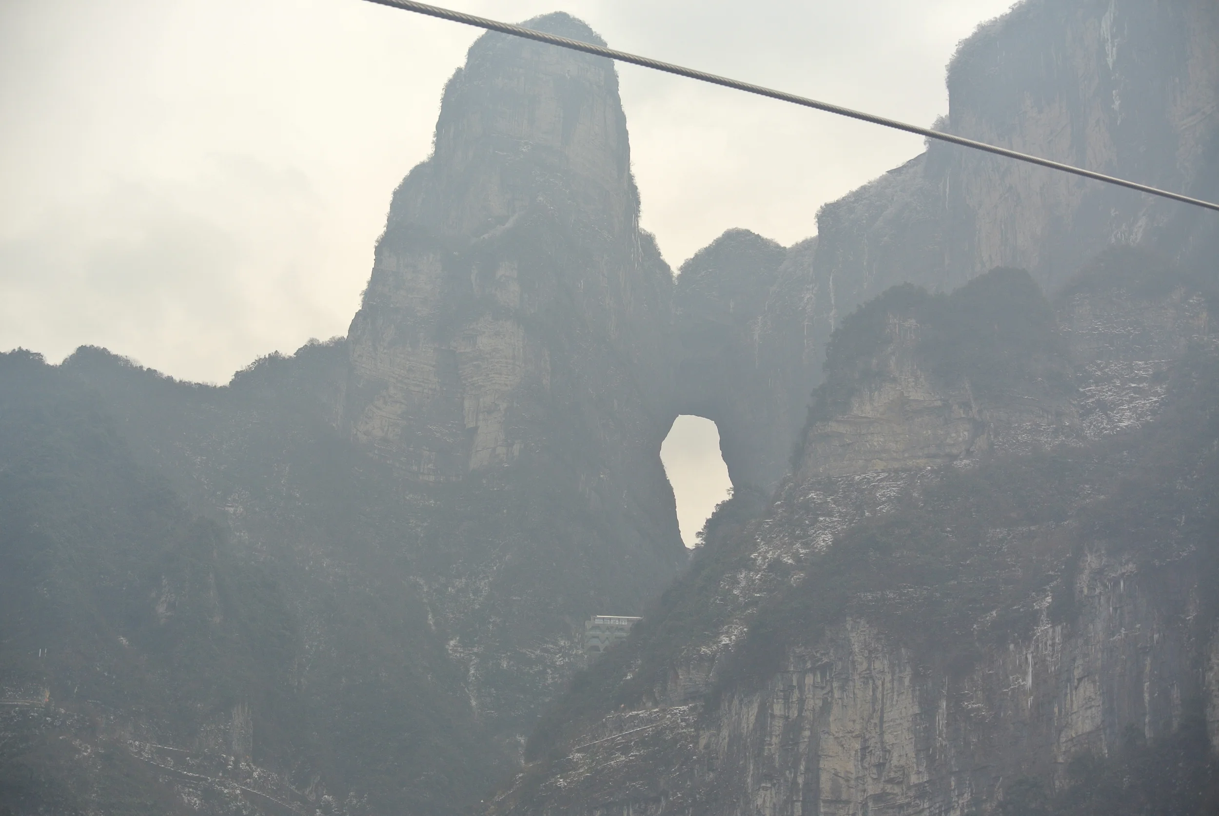 I started my time here in Zhangjiajie at the Tianmen Mountains. It is about half an hour from the city centre, and starts with a huge cable car ride to the top. About half way up, we moved above the China smog, and the view became spectacular.