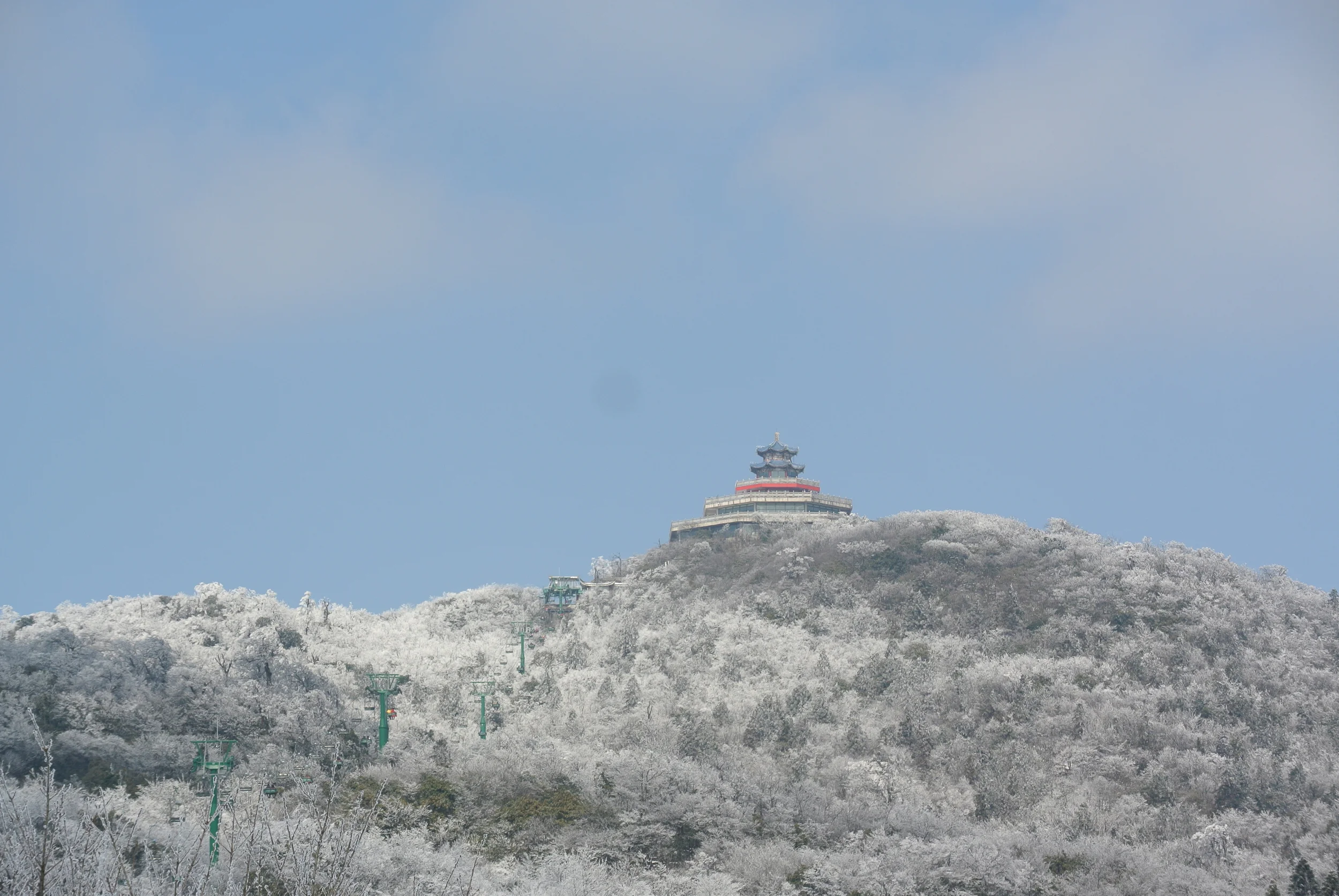 On top of the mountain is a temple which stood out against the cold, white snow, and I only slipped once climbing up the icy stairs. I even managed to catch myself and didn't even fall!!