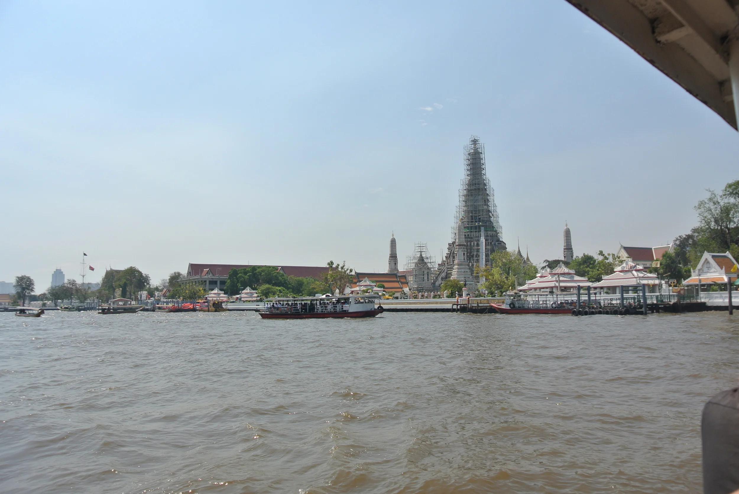 We started off with Wat Arun, the Temples of Dawn. I had never seen a temple like this before, and even though it is currently under repair, with scaffolding over the main tier, it was incredible. The level of detail in the mosaic is amazing, and even from a distance, it's size is imposing and amazing.